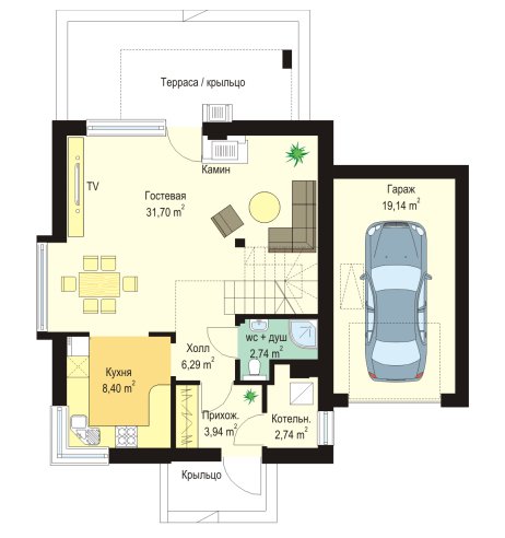 Проект коттеджа с двускатной крышей S8-144 (Густав 2)