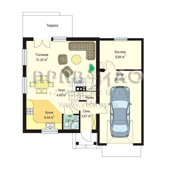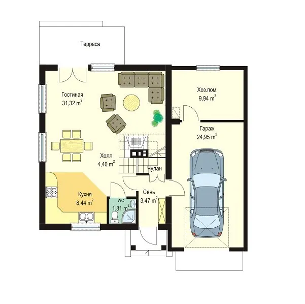 Проект экономичного коттеджа с гаражом S8-145 (Д03 с гаражом)