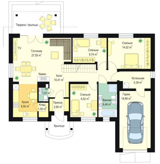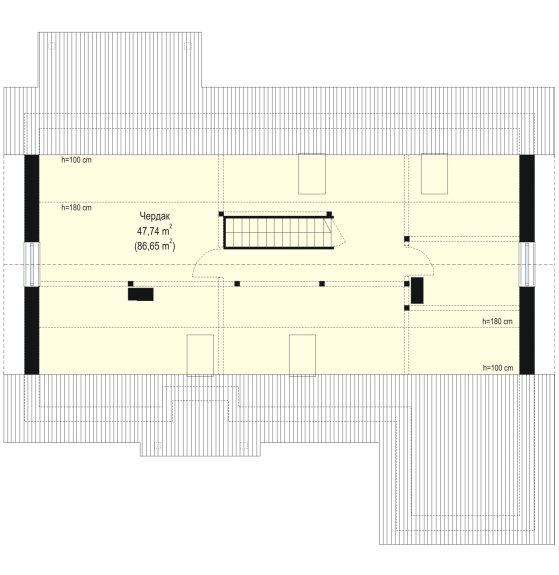 | Возможный материал кровли | металлочерепица, гибкая черепица, керамическая черепица, композитная черепица, цементно-песчаная черепица, фальцевая кровля |
