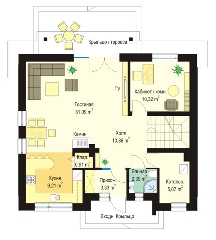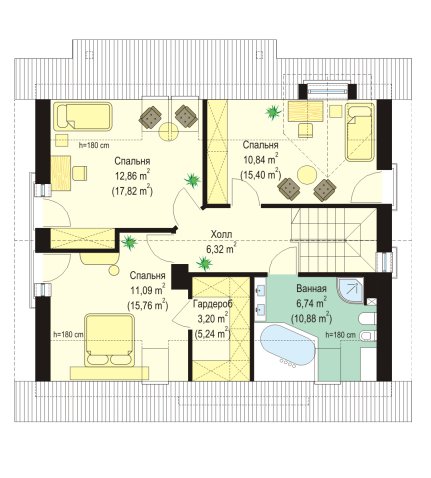| Возможный материал кровли | металлочерепица, гибкая черепица, керамическая черепица, композитная черепица, цементно-песчаная черепица, фальцевая кровля |