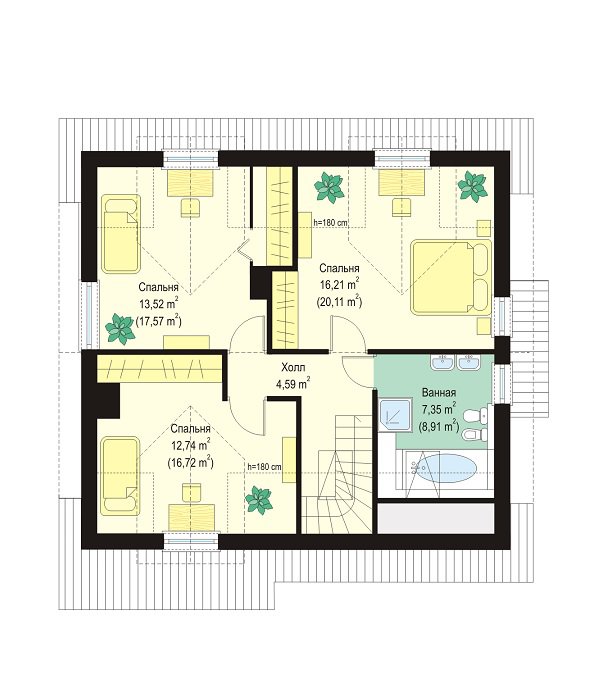 | Возможный материал кровли | металлочерепица, гибкая черепица, керамическая черепица, композитная черепица, цементно-песчаная черепица, фальцевая кровля |