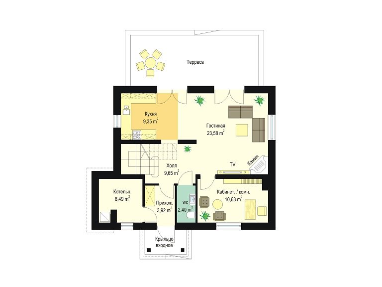 | Возможный материал кровли | металлочерепица, гибкая черепица, керамическая черепица, композитная черепица, цементно-песчаная черепица, фальцевая кровля |