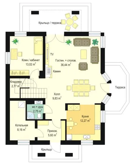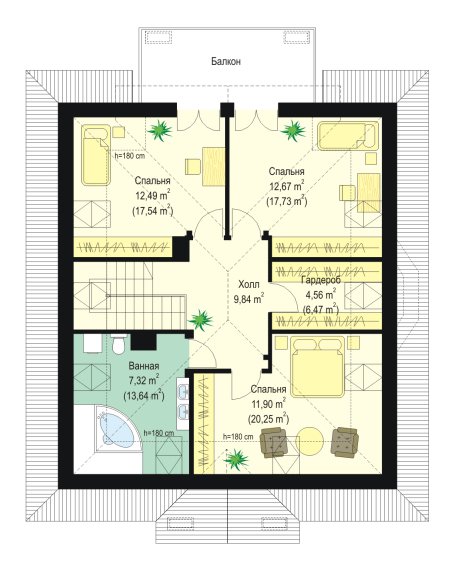 | Возможный материал кровли | металлочерепица, гибкая черепица, керамическая черепица, композитная черепица, цементно-песчаная черепица, фальцевая кровля |
