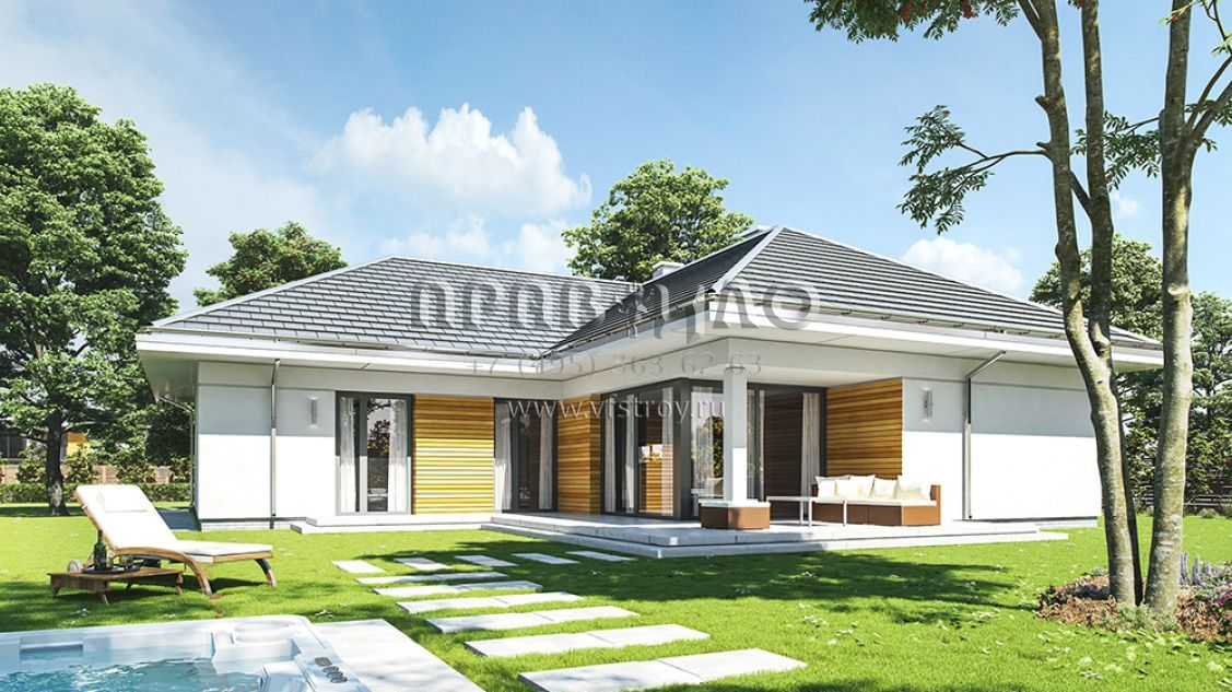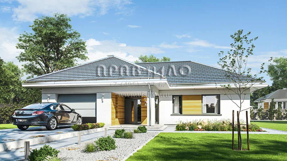 Проект современного одноэтажного дома с тремя спальнями и гаражом S8-189-1 (Одноэтажный)