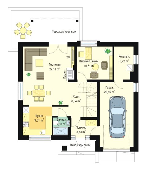 | Возможный материал кровли | металлочерепица, гибкая черепица, керамическая черепица, композитная черепица, цементно-песчаная черепица, фальцевая кровля |