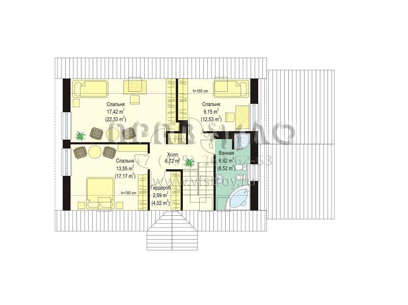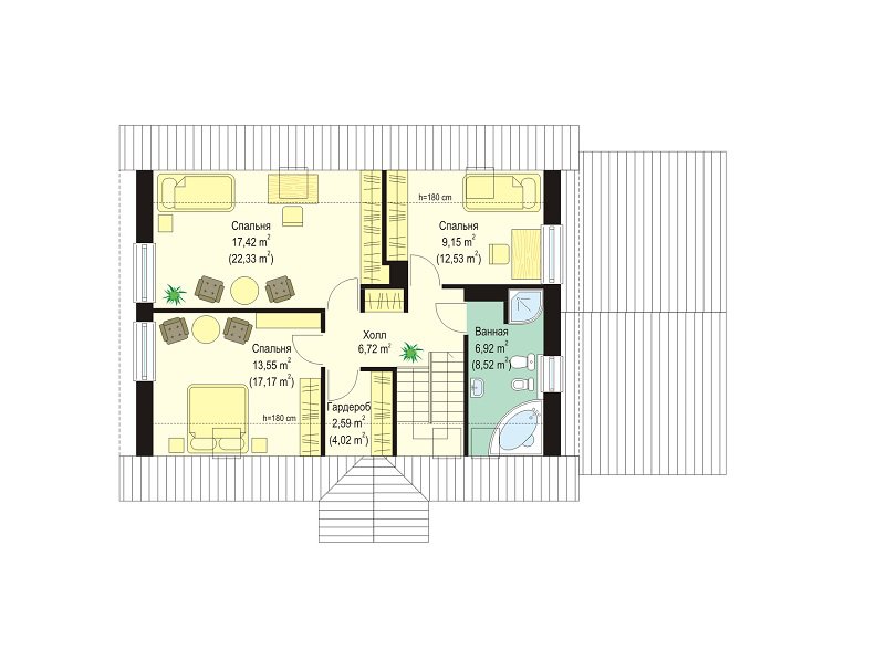 | Возможный материал кровли | металлочерепица, гибкая черепица, керамическая черепица, композитная черепица, цементно-песчаная черепица, фальцевая кровля |