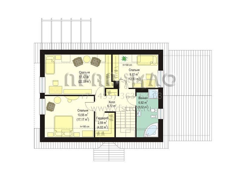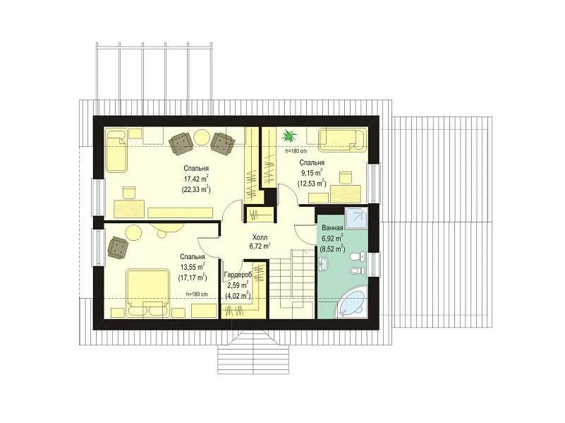 | Возможный материал кровли | металлочерепица, гибкая черепица, керамическая черепица, композитная черепица, цементно-песчаная черепица, фальцевая кровля |