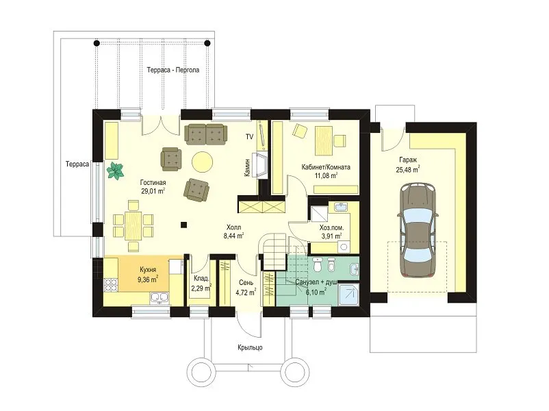 | Гараж | 1 машина |