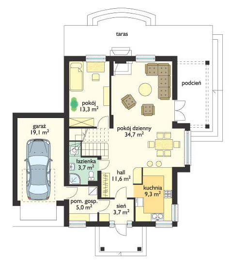 Проект загородного коттеджа с террасой S8-199 (Весенний)
