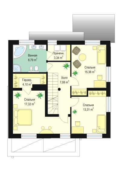 | Возможный материал кровли | металлочерепица, гибкая черепица, керамическая черепица, композитная черепица, цементно-песчаная черепица, фальцевая кровля |