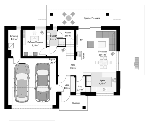 | Гараж | 2 машины |
