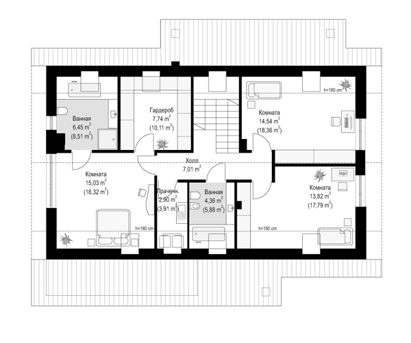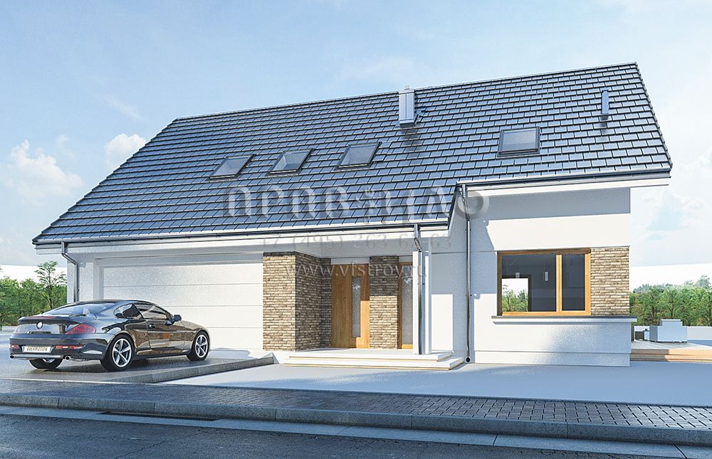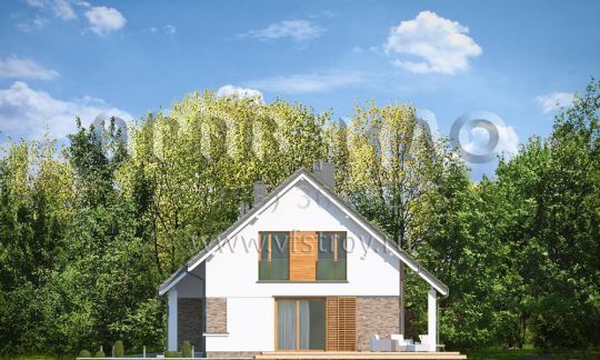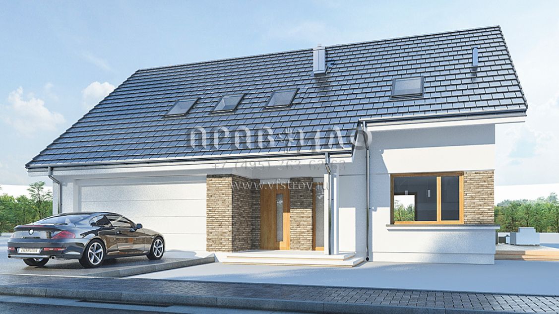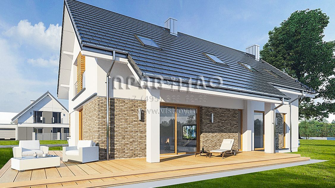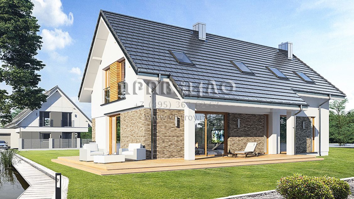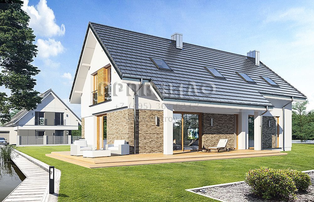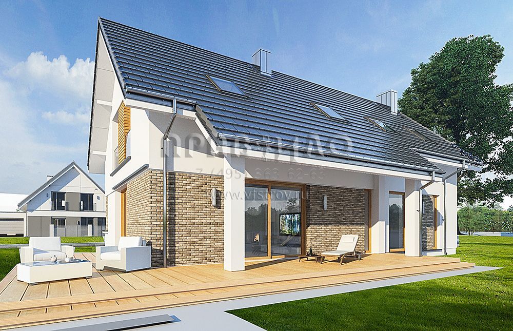 Проект современного мансардного дома с двускатной крышей S8-214-1 (Биба)