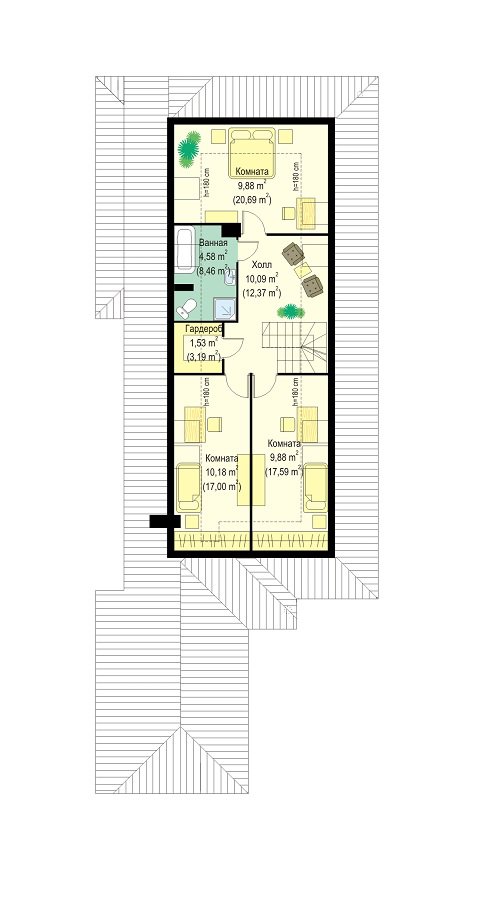 | Возможный материал кровли | металлочерепица, гибкая черепица, керамическая черепица, композитная черепица, цементно-песчаная черепица, фальцевая кровля |