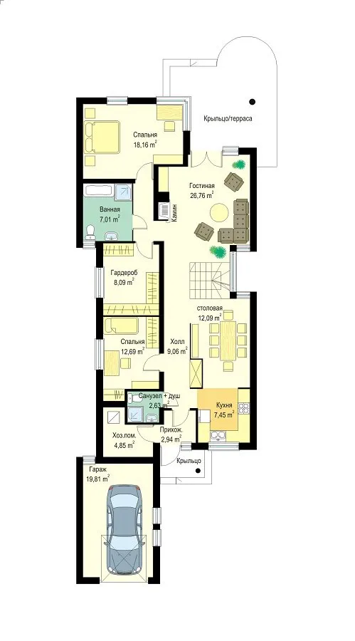Проект керамоблочного дома для вытянутого участка S8-214 (Такса 2)