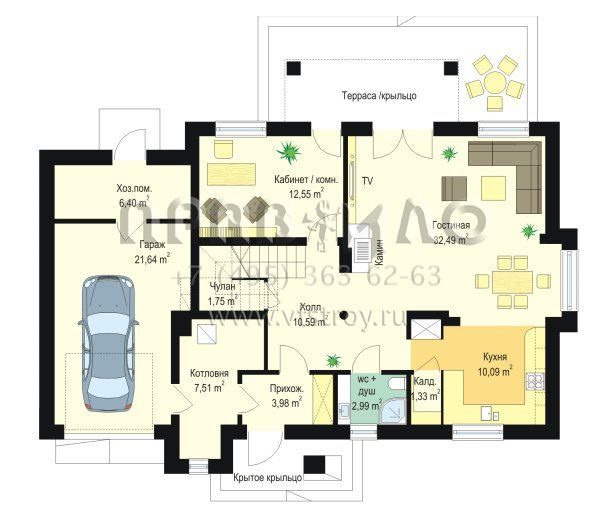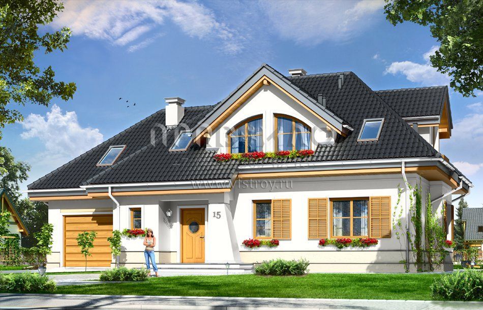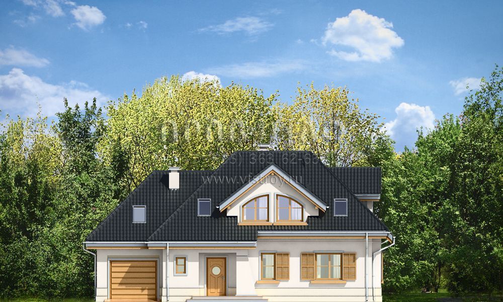 Проект загородного коттеджа с пристроенным гаражом S8-228-1 (Габрик)