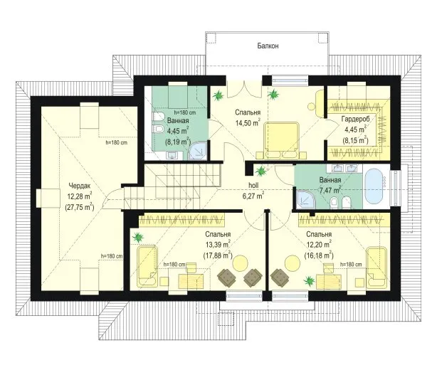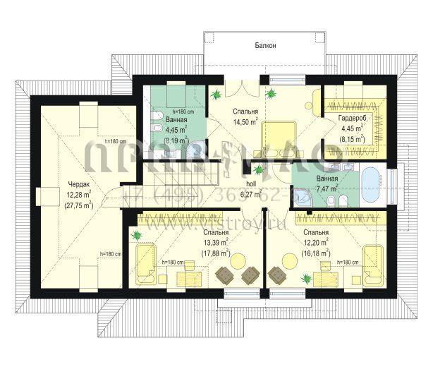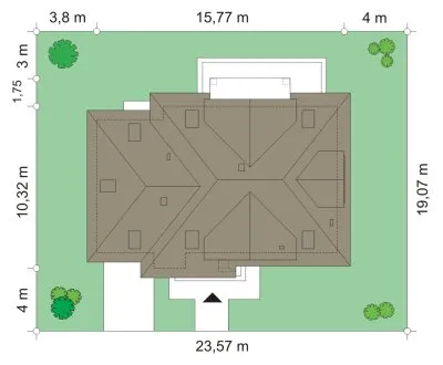 | Возможный материал кровли | металлочерепица, гибкая черепица, керамическая черепица, композитная черепица, цементно-песчаная черепица, фальцевая кровля |