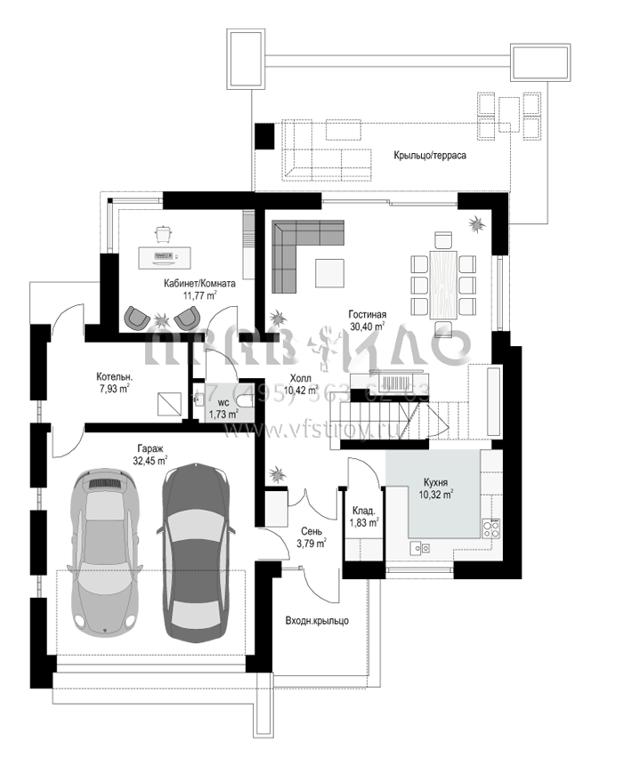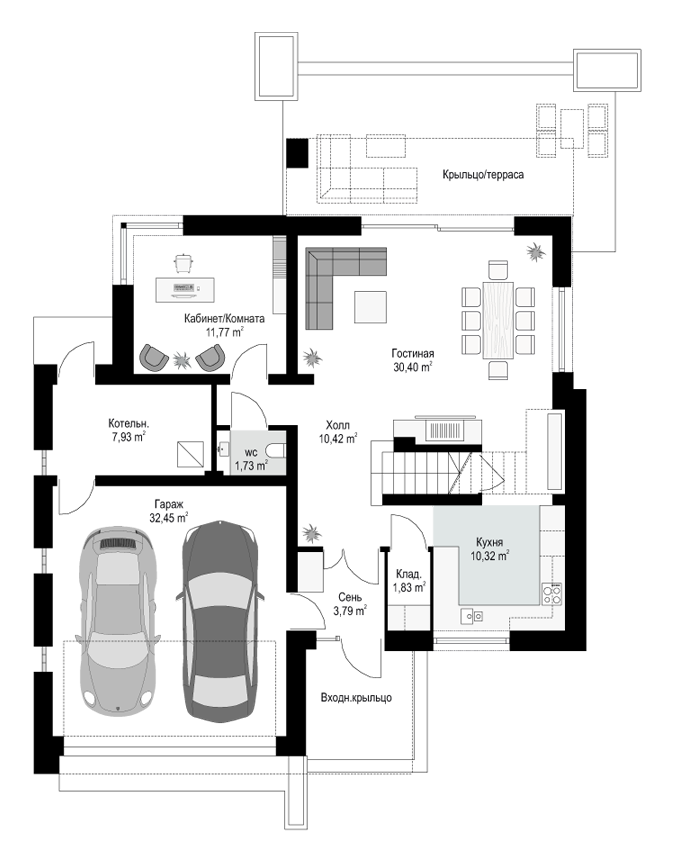| Гараж | 2 машины |