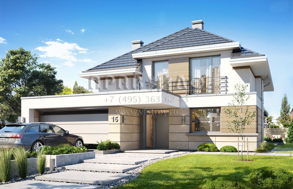 Проект современного дома с мансардой и гаражом на два автомобиля S8-233-1 (Обманщик)