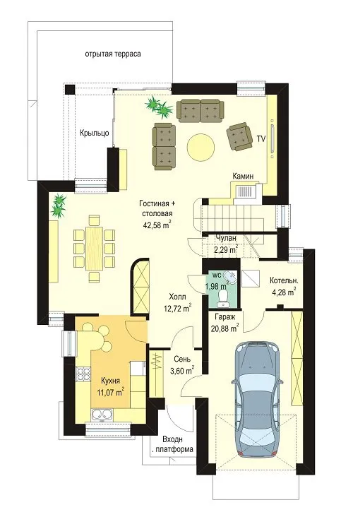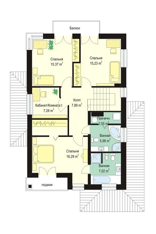 | Возможный материал кровли | металлочерепица, гибкая черепица, керамическая черепица, композитная черепица, цементно-песчаная черепица, фальцевая кровля |