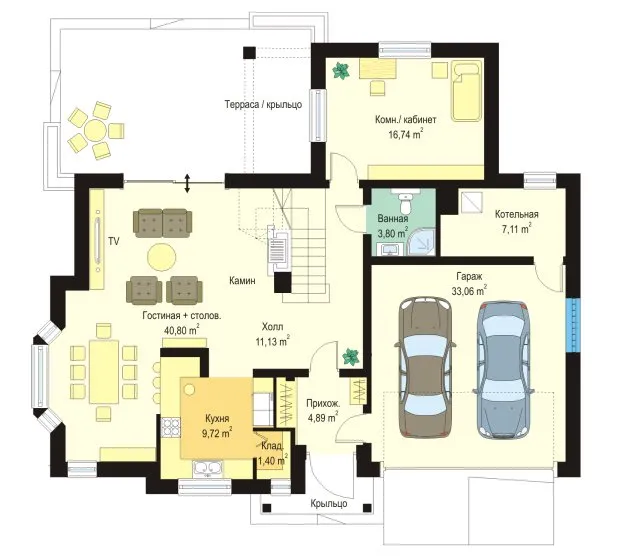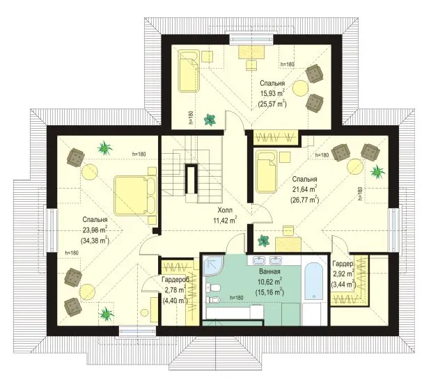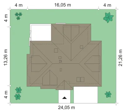 | Возможный материал кровли | металлочерепица, гибкая черепица, керамическая черепица, композитная черепица, цементно-песчаная черепица, фальцевая кровля |