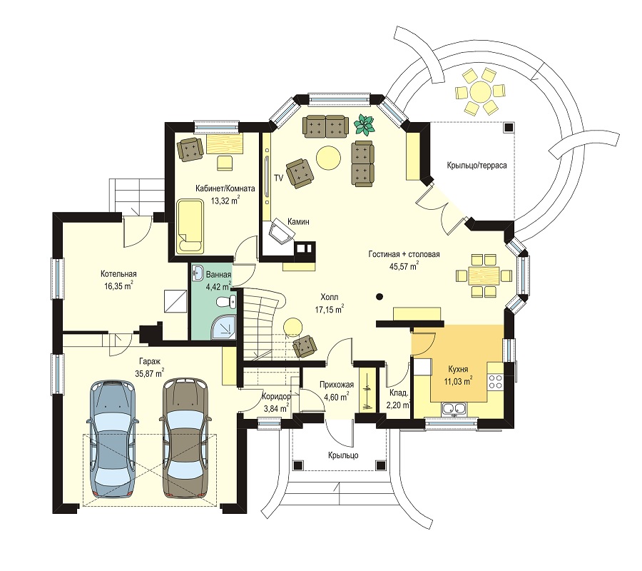 | Гараж | 2 машины |