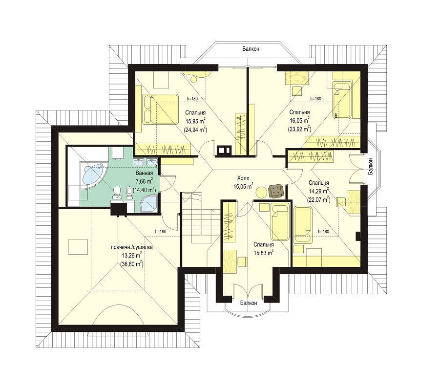 | Возможный материал кровли | металлочерепица, гибкая черепица, керамическая черепица, композитная черепица, цементно-песчаная черепица, фальцевая кровля |