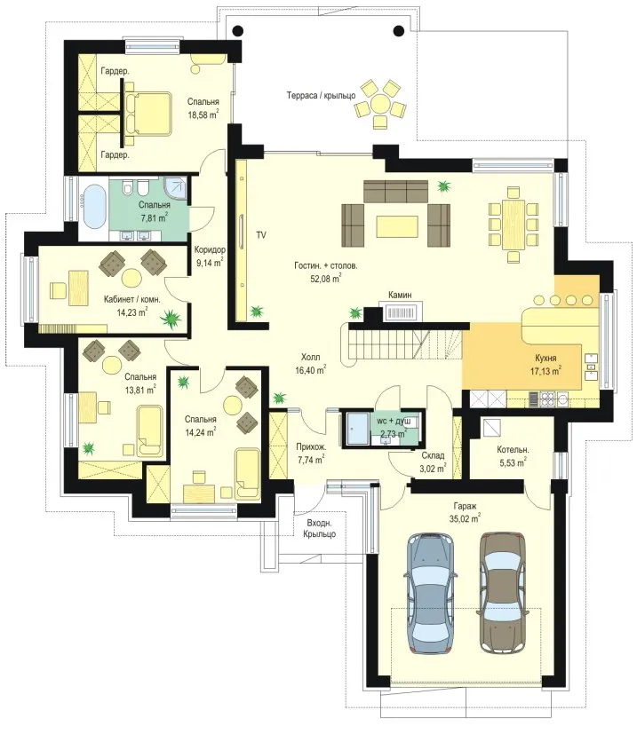 Проект шикарного загородного дома S8-298 (Раскидистый)