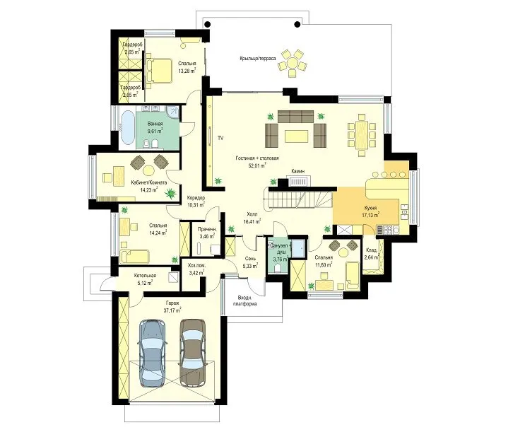 | Гараж | 2 машины |