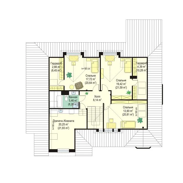 | Возможный материал кровли | металлочерепица, гибкая черепица, керамическая черепица, композитная черепица, цементно-песчаная черепица, фальцевая кровля |