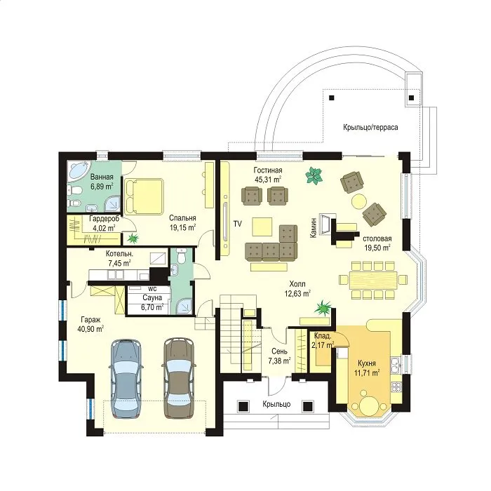 | Гараж | 2 машины |