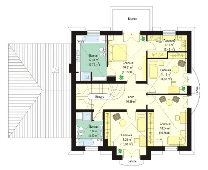 | Возможный материал кровли | металлочерепица, гибкая черепица, керамическая черепица, композитная черепица, цементно-песчаная черепица, фальцевая кровля |