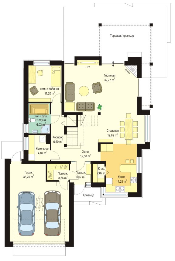 | Гараж | 2 машины |