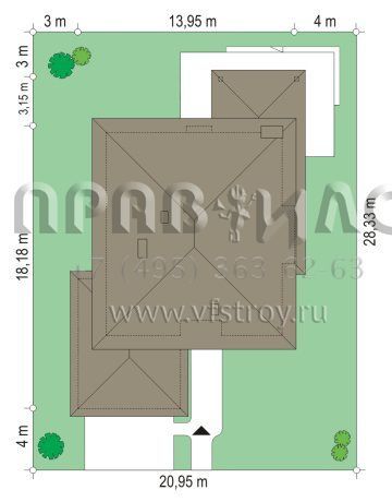 | Возможный материал кровли | металлочерепица, гибкая черепица, керамическая черепица, композитная черепица, цементно-песчаная черепица, фальцевая кровля |