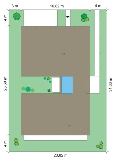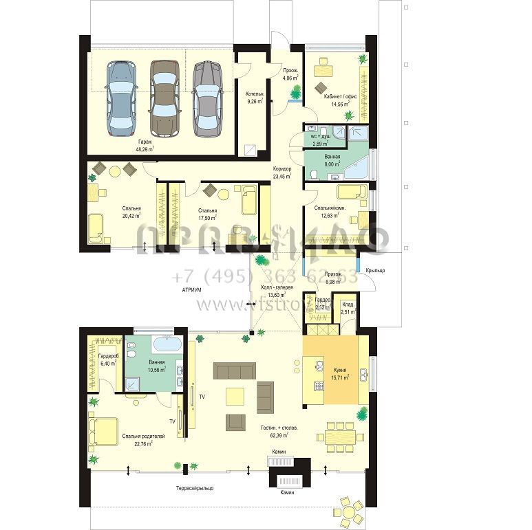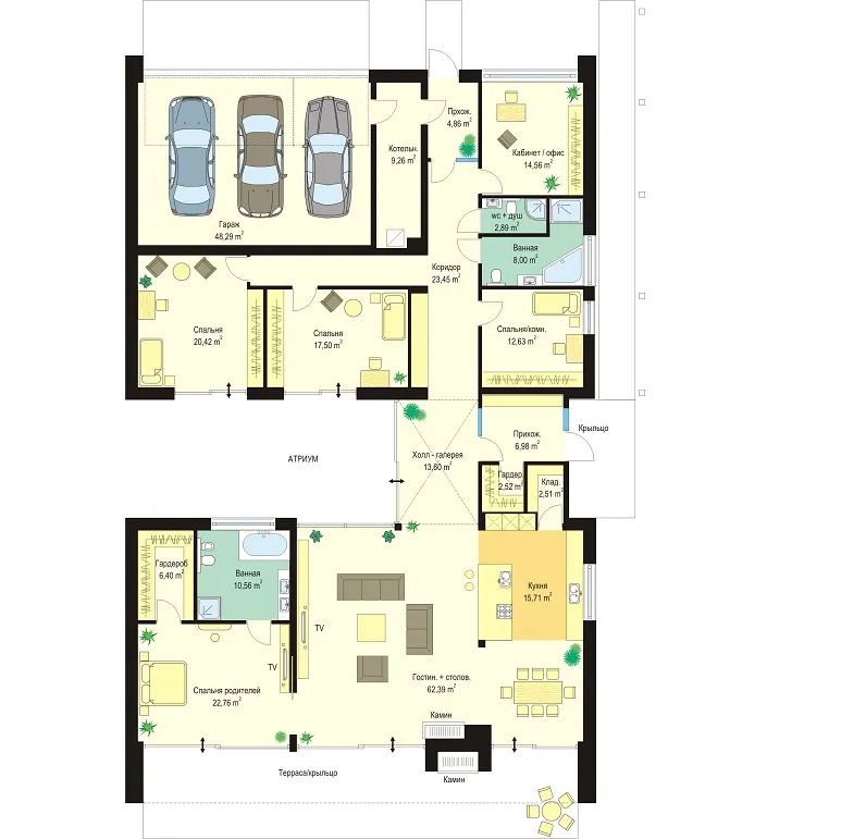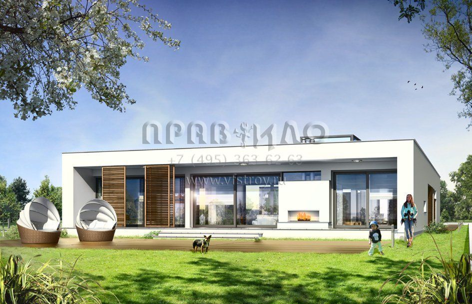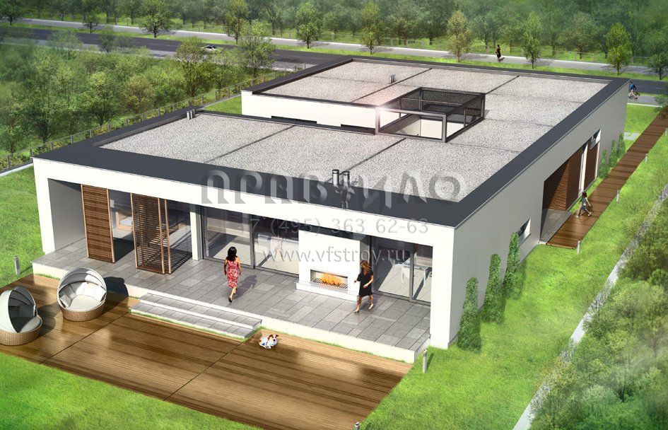 Проект одноэтажной виллы с плоской кровлей S8-369 (Вилла Атриум)