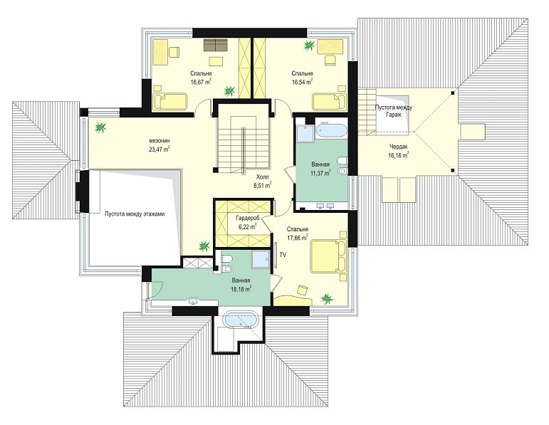 | Возможный материал кровли | металлочерепица, гибкая черепица, керамическая черепица, композитная черепица, цементно-песчаная черепица, фальцевая кровля |
