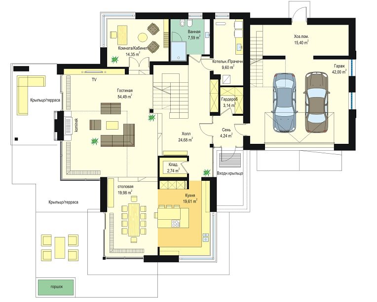 | Гараж | 2 машины |
