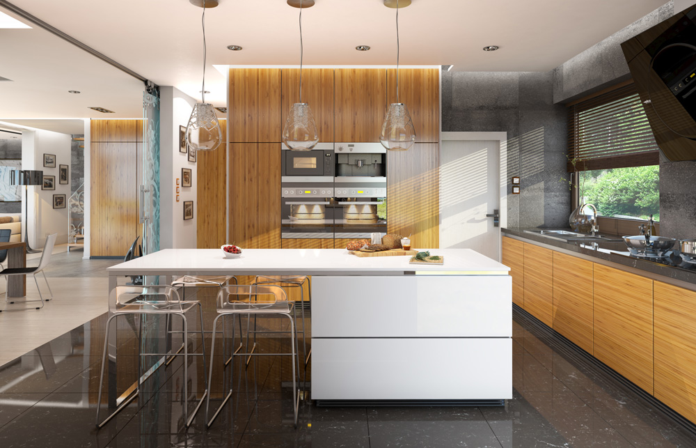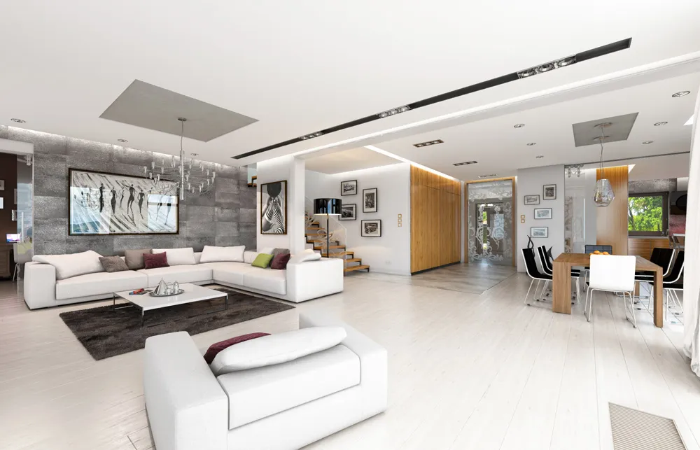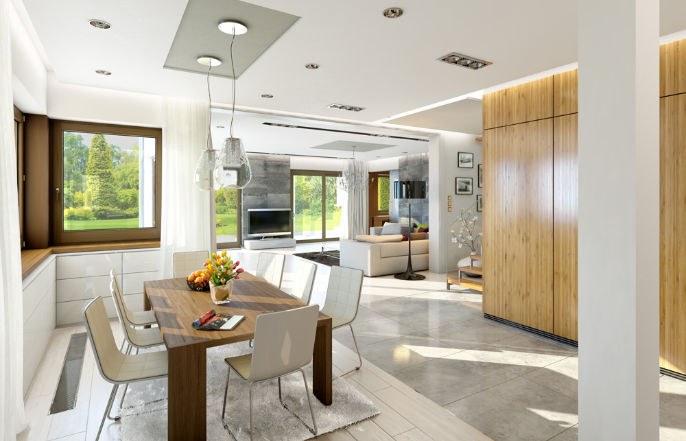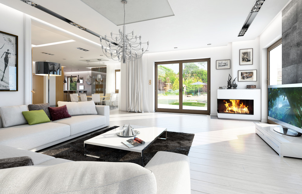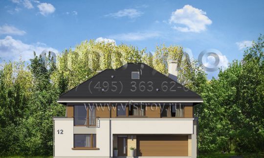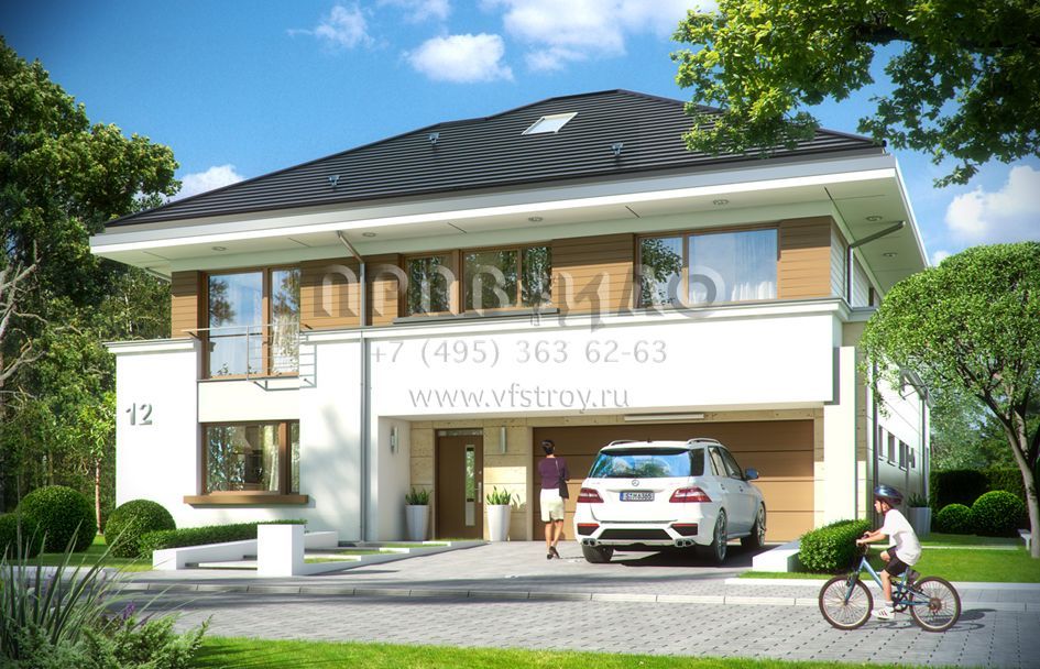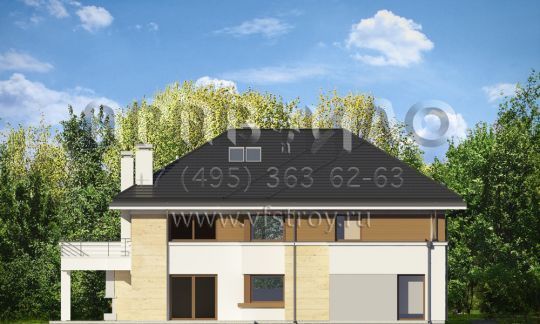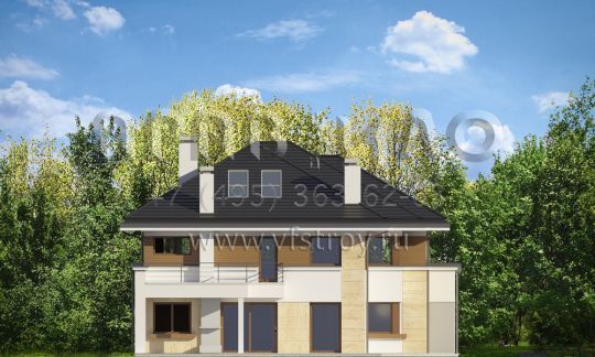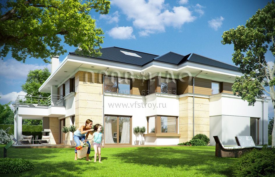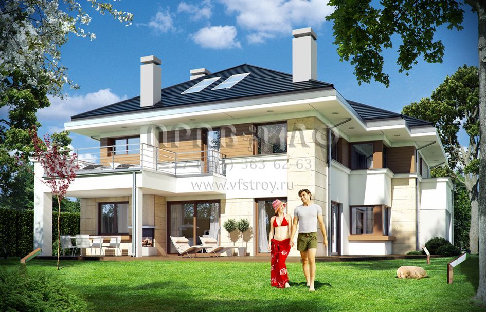 Проект современной двухэтажной виллы с двумя каминами, балконом и гаражом на два автомобиля S8-441-1 (Лесная Резиденция)
