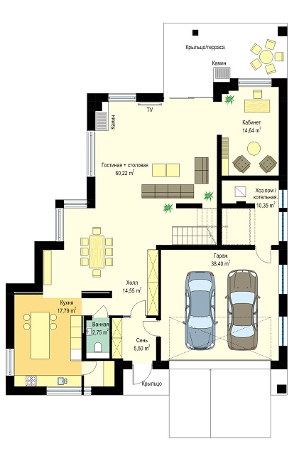 | Гараж | 2 машины |