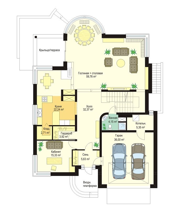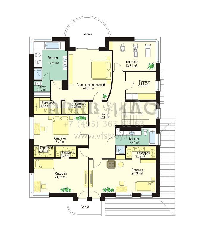 Проект загородного коттеджа с четырехскатной кровлей S8-451 (Габриэль)
