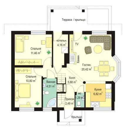 Проект коттеджа для небольшой семьи S8-84 (Жемчужина)