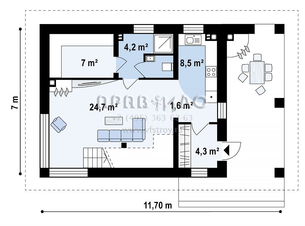 | Возможный материал кровли | металлочерепица, гибкая черепица, керамическая черепица, композитная черепица, цементно-песчаная черепица, фальцевая кровля |
