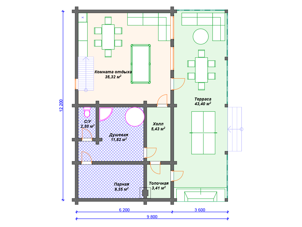 | Материал стен | оцилиндрованное бревно, профилированный брус, клееный брус |