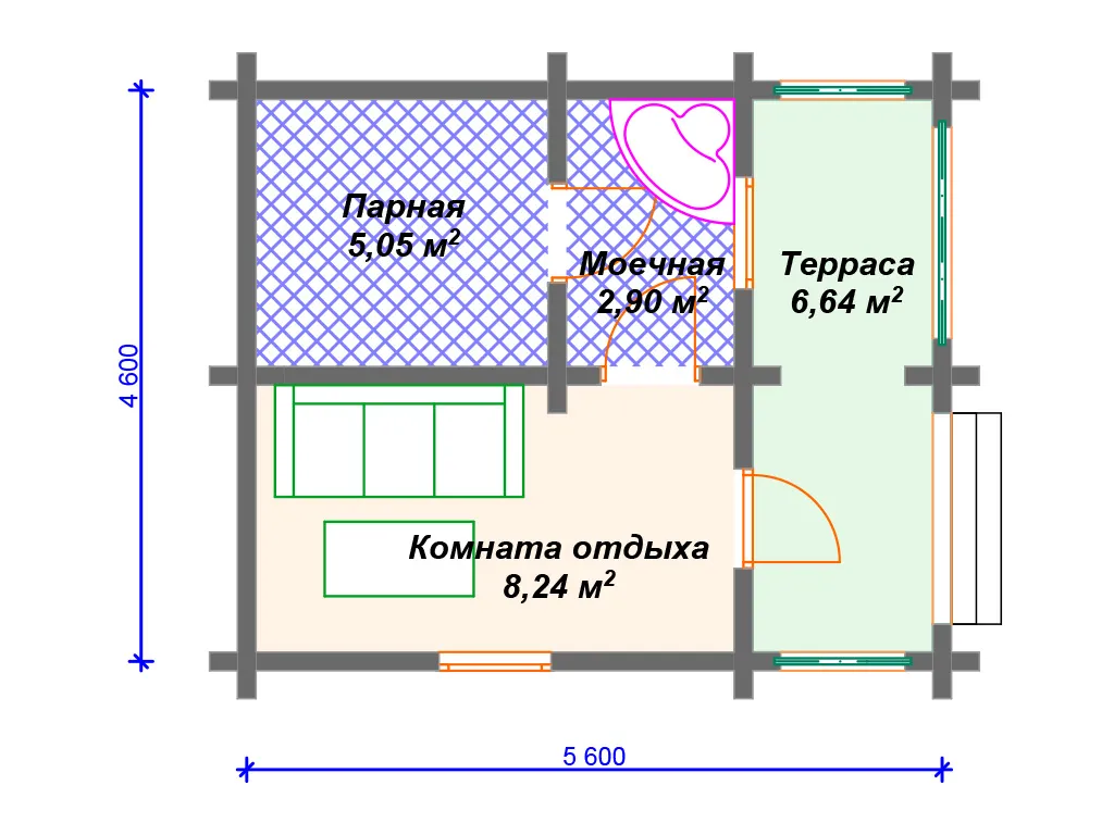 Проект деревянной бани SB4-23 (Б-063)