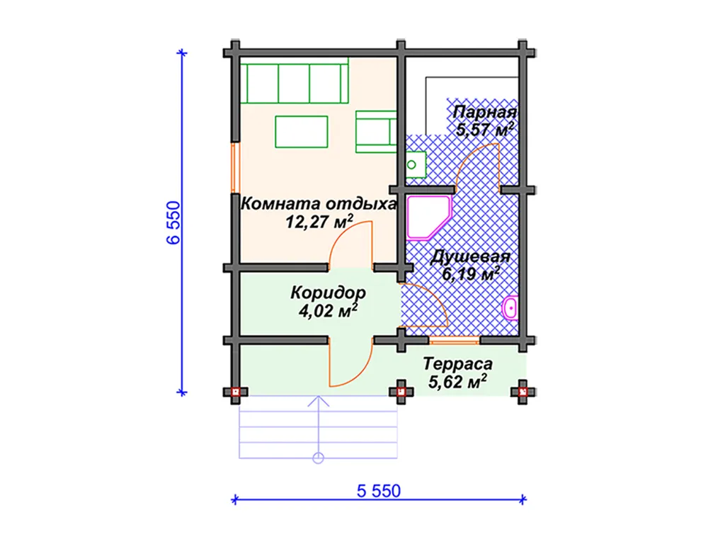 Проект деревянной бани SB4-34 (Б-081)