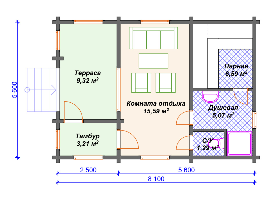 | Материал стен | оцилиндрованное бревно, профилированный брус, клееный брус |