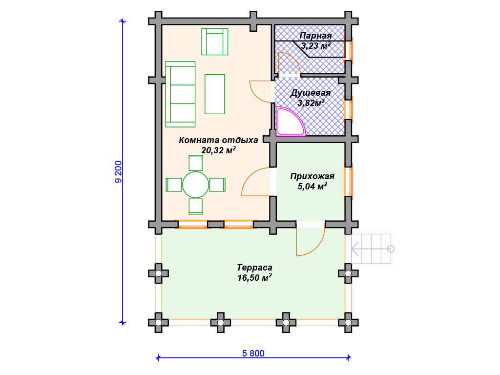 | Материал стен | оцилиндрованное бревно, профилированный брус, клееный брус |
