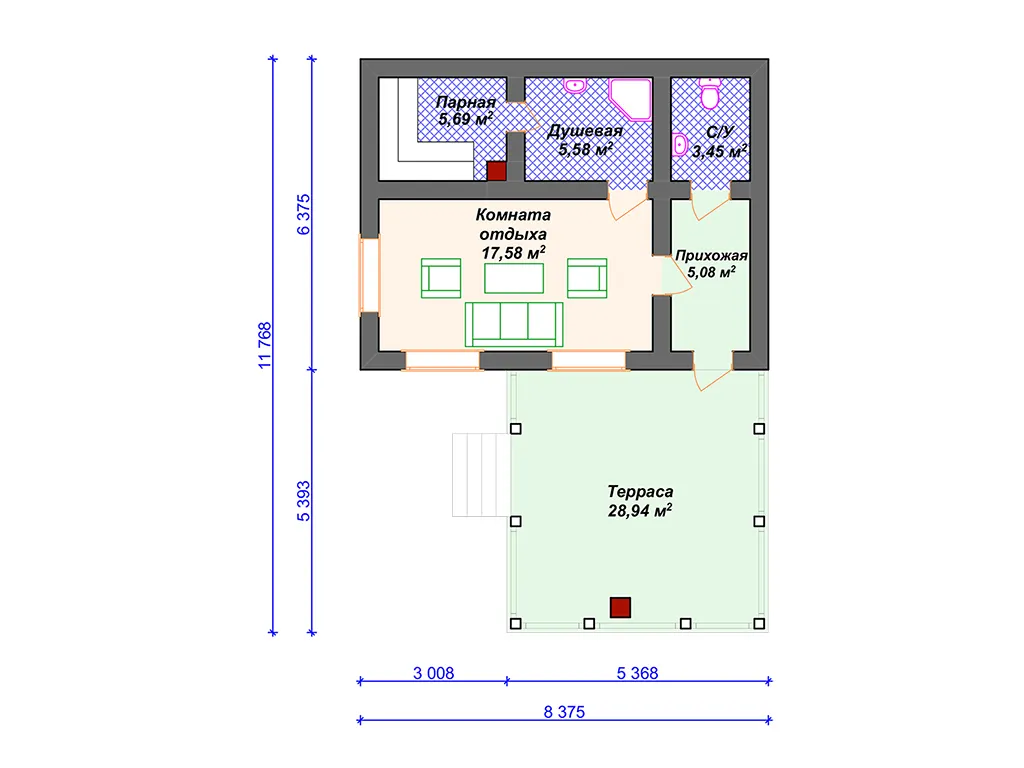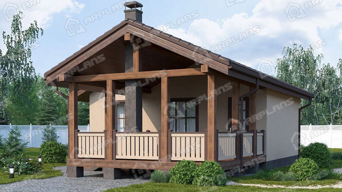 Проект бани из газобетона с террасой SB4-66 (Б-078)