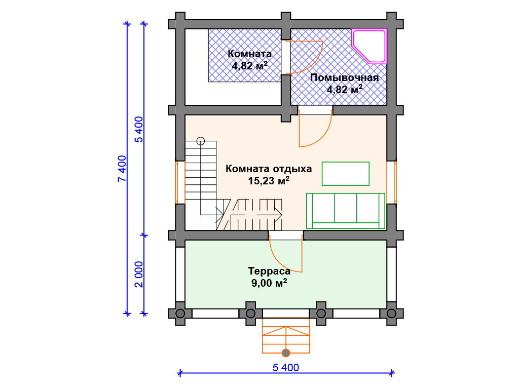 Проект деревянной бани SB4-67 (Б-048)