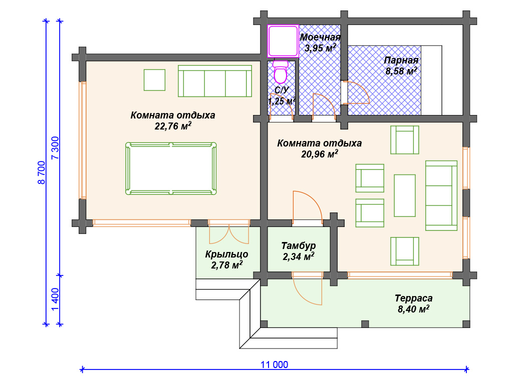 | Материал стен | оцилиндрованное бревно, профилированный брус, клееный брус |