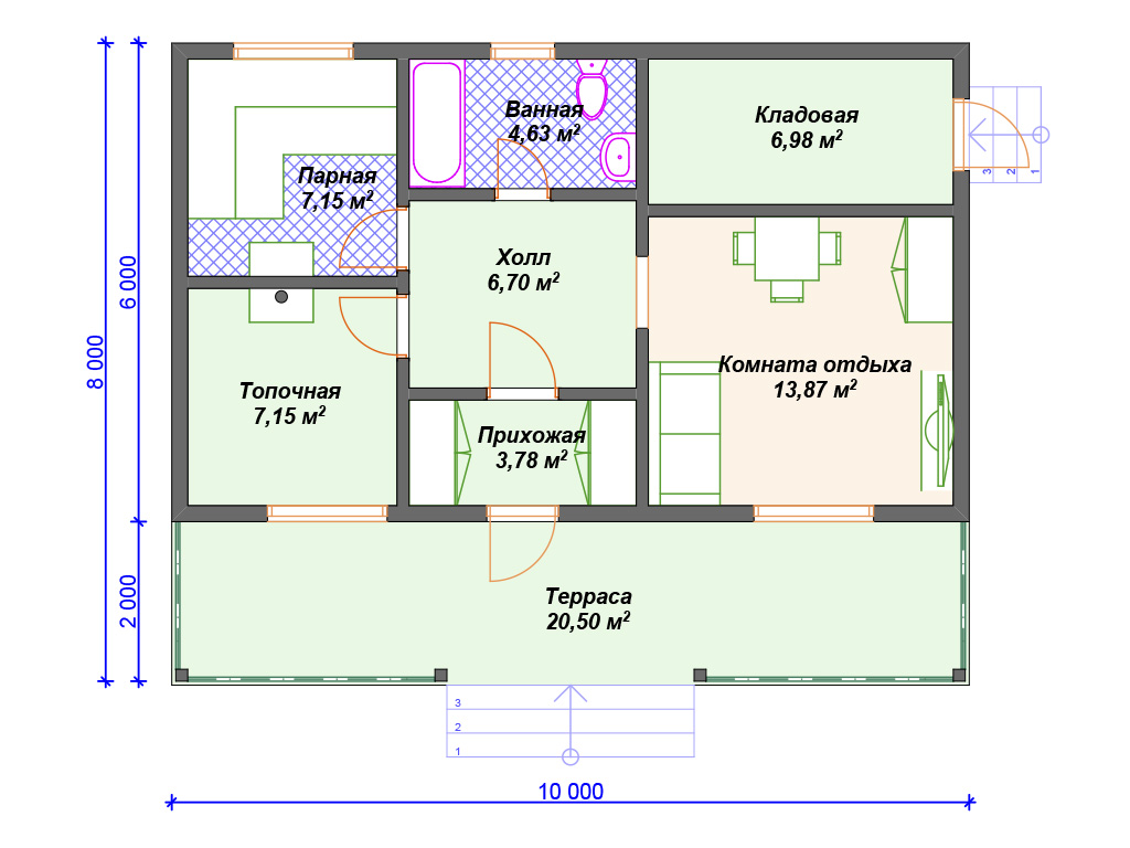 Проект деревянной бани SB4-71 (Б-066)
